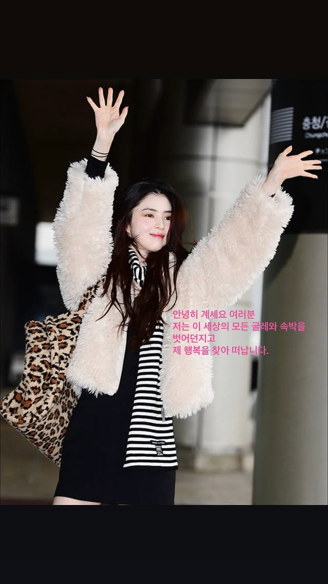 13일 오후 한소희는 개인 SNS에 "안녕히 계세요 여러분. 저는 이 세상의 모든 굴레와 속박을 벗어던지고 제 행복을 찾아 떠납니다"라고 밝혔다.