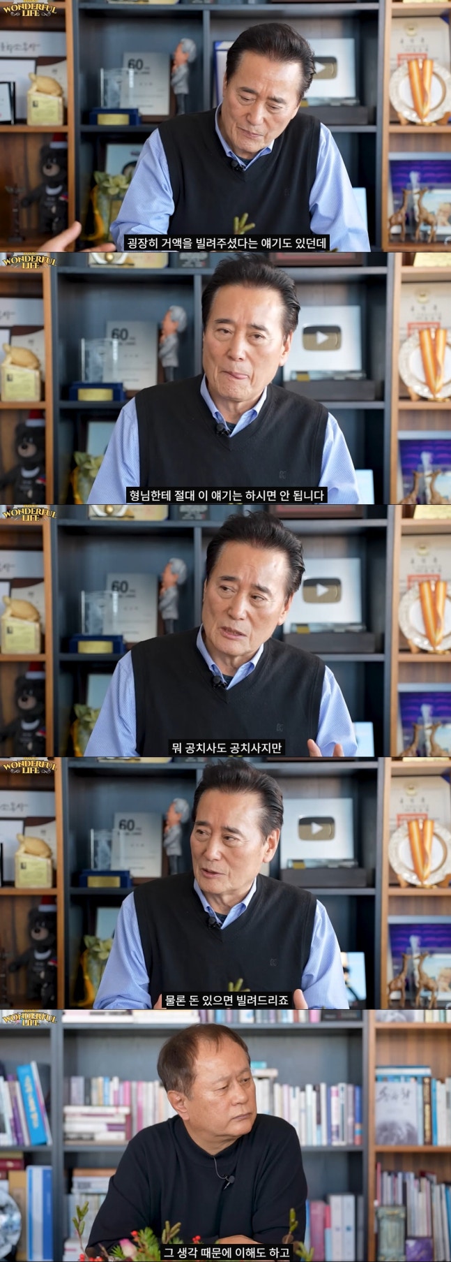 이에 대해 김성환은 "다 지나간 얘기지만 돈 빌려준 것 때문에 형님한테 '절대 이 얘기는 하면 안된다'고 했다. 공치사도 공치사지만 그런 돈을 내가 어렵게 어렵게 (구한 거다.) 그 돈이 어디 있겠냐. 그 큰 돈을 어떻게 빌려주겠냐"며 "내가 부탁해서 나를 믿고 사람들이 그 돈을 빌려주신 거다"라고 밝혔다.