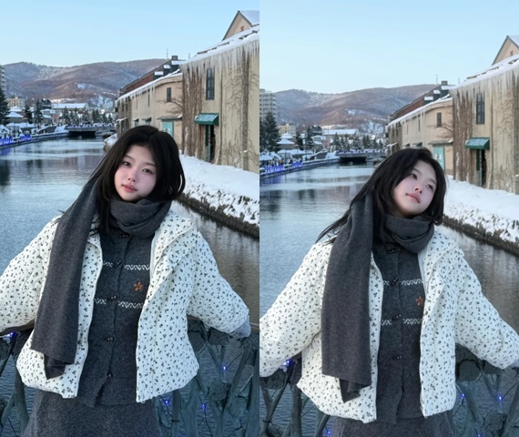 공개된 사진 속 설아 양은 일본 오타루 운하를 배경으로 포즈를 취하고 있다. 화이트 패딩에 그레이 니트 원피스, 목도리를 매치한 설아 양은 눈 덮인 거리 속에서 청순하면서도 세련된 분위기를 자아내 시선을 끌었다.