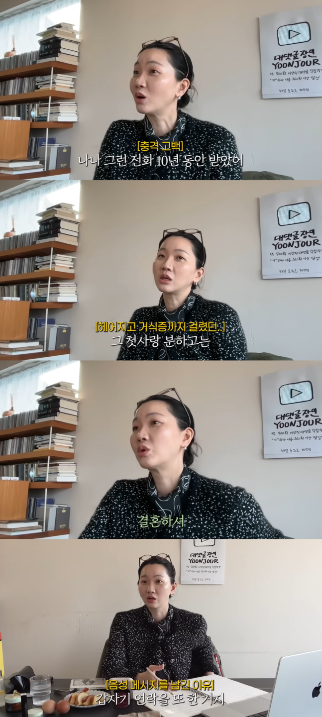 이어 “며칠 뒤 내가 다니는 미용실 원장님이 ‘윤주야, 그 분 결혼한다더라’라고 하더라”며 “결혼을 앞두고 갑자기 또 연락을 한 거였다”고 설명했다. 그는 “그 사람과 헤어진 지 8년이 넘었는데, 그 미용실에서 펑펑 울었다”며 당시를 떠올렸다.
