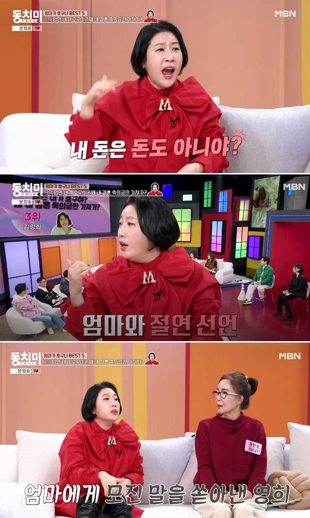 결국 김영희는 800만 원을 돌려줬다. 그런데 이후 남동생의 결혼 과정에서 또 한 번 상처를 받았다. 그는 “엄마가 은근슬쩍 축의금을 동생에게 줬다는 이야기를 들었다”며 “지방 공연을 세 군데 뛰고 빚을 갚느라 숨도 못 쉬는 상황에서, 구멍 난 항아리에 물 붓는 기분이었다”고 토로했다.