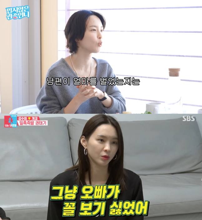 또한 김수미는 지난해 4월 유튜브 채널 ‘밉지않은 관종언니’에 출연해 결혼 생활과 경제적 자립에 대한 생각을 밝힌 바 있다. 당시 이지혜가 “김수미 수입이 개코보다 더 좋았다는 얘기도 들었다”고 묻자, 김수미는 “정확히 남편이 얼마를 버는지는 저도 모른다. 다만 사업을 시작했을 때는 저도 많이 벌었다”고 답해 화제를 모았다.