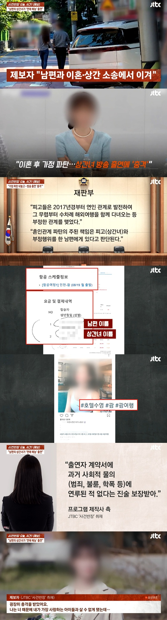 20일 JTBC '사건반장'에 따르면 제보자인 40대 여성 B 씨는 남편이 운영하던 사업체 매장 직원 A 씨와 불륜을 저질러, 15년간 결혼생활에 마침표를 찍었다. B 씨는 2022년 이혼 소송과 함께 상간자 소송을 병합해 진행했다. 당시 상간자 소송에서 승소했고, 법원은 불륜을 저지른 남편과 상간녀 A 씨에게 3000만 원의 위자료를 지급하라는 판결을 내렸다.
