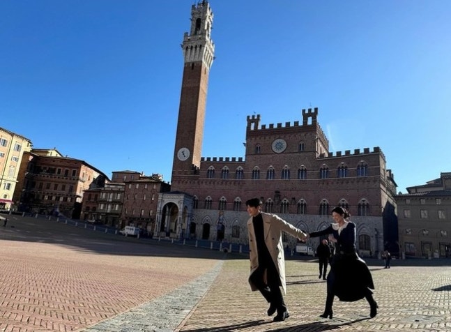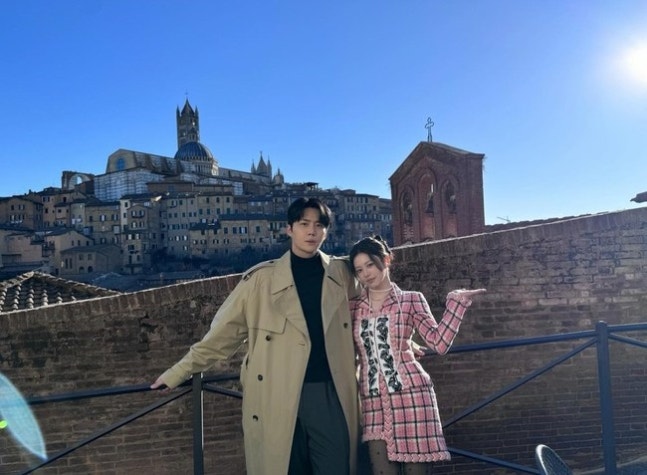 공개된 사진에는 ‘이 사랑 통역 되나요?’ 해외 촬영 현장 모습이 담겼다. 고윤정은 김선호와 계단에 나란히 앉아 있는가 하면 다정하게 얼굴을 맞댄 채 카메라를 향해 미소 지었다. 벤치에서 한 개의 코트를 나눠 덮는가 하면 서로 허리를 감싼 채 계단을 오르는 뒷모습이 설렘을 자아냈다.