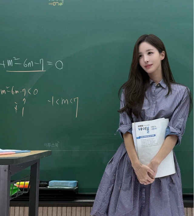 이아영은 26일 자신의 SNS에 “벌써 1년 전. 오늘은 열일 모드”라는 글과 함께 여러 장의 사진을 게재했다. 공개된 사진에는 수학 문제로 가득 찬 칠판 앞에 선 모습과, 퇴근길 거리에서 촬영한 뒷모습이 담겼다. 교실에서는 단정한 셔츠 원피스 차림으로 교재를 품에 안은 채 차분한 분위기를 드러냈고, 퇴근길에는 연노란색 밀착 니트 원피스에 롱부츠를 매치해 전혀 다른 무드를 연출했다.