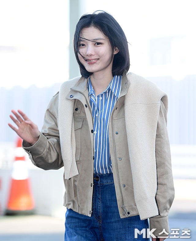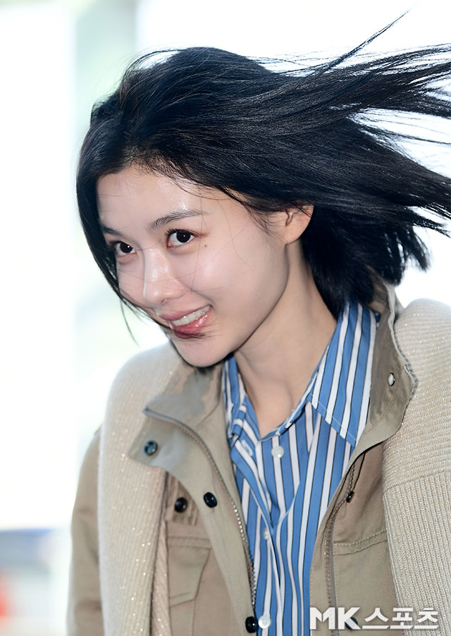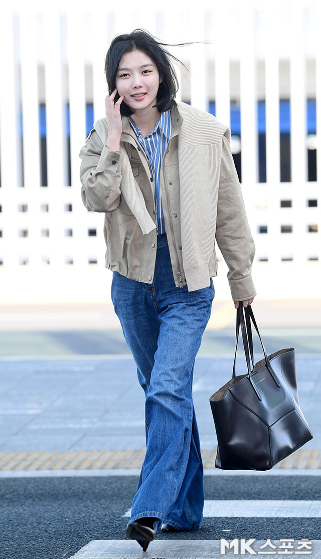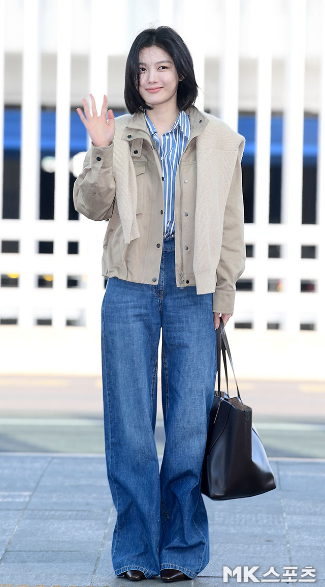 김유정은 23일 오전 해외 일정 참석을 위해 인천국제공항을 통해 이탈리아 밀라노로 출국했다. 단발 보브컷에 베이지 톤 재킷, 블루 스트라이프 셔츠, 와이드 데님을 매치한 간결한 스타일링이 눈길을 끌었다. 과하게 꾸미지 않은 ‘힘 뺀’ 레이어드가 오히려 계절의 변화를 또렷하게 보여줬다.