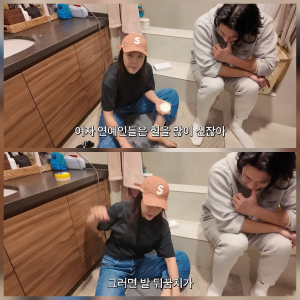 이어 도구에 물을 묻혀 발뒤꿈치를 문지르자 하얀 각질이 가루처럼 떨어졌고, 이를 본 제작진은 “치즈 가루처럼 나온다”고 놀라워했다. 이에 백지영 역시 “맞다, 치즈 가루 같다”며 웃음을 터뜨렸다.