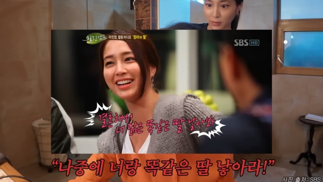 앞서 이민정은 모친과 자신의 유튜브 채널에 등장한 바 있다. 제작진은 "'힐링캠프' 나왔을 때 민정 님한테 속상했다고 '너도 나중에 너 같은 딸 낳아봐라'라고 하시지 않았나"라고 물었다.