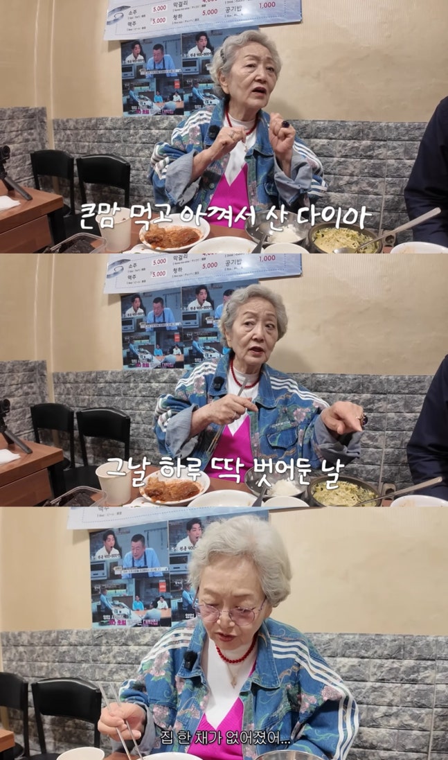 현재 끼고 있는 반지를 가리킨 김영옥은 "이 반지 하나만 (바닥에) 떨어져 있어서 살았다. 집 한 채가 없어졌다"고 말하며 큰 재산 피해를 언급했다.