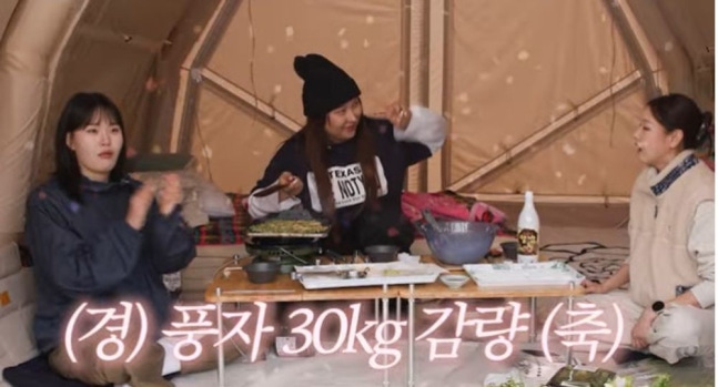 영상에선 한혜진이 풍자, 엄지윤과 캠핑에 나선 모습이 공개됐다. 한혜진과 풍자는 엄지윤이 홀쭉해졌다며 “왜 이렇게 살이 빠졌냐”라고 걱정했다. 이에 엄지윤은 한혜진, 풍자와 화천 산천어 축제를 갔을 당시를 언급하며 “일단 충격을 먹었다. ‘풍자, 엄지윤보다 날씬하다’라는 기사가 났더라. 그것 때문에 다이어트를 해야겠다고 생각을 하고 있었는데 장염에 걸렸다”라며 장염 때문에 자연스럽게 다이어트를 하게 됐음을 털어놨다.