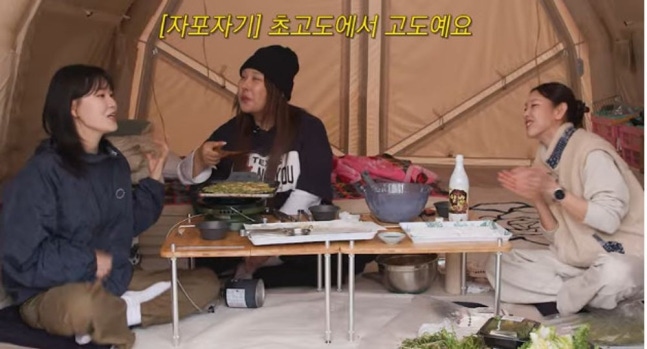 9일 한혜진의 유튜브 채널에선 ‘먹다가 웃다가 배 찢어질 뻔한 캠핑’이라는 제목의 영상이 업로드 됐다.
