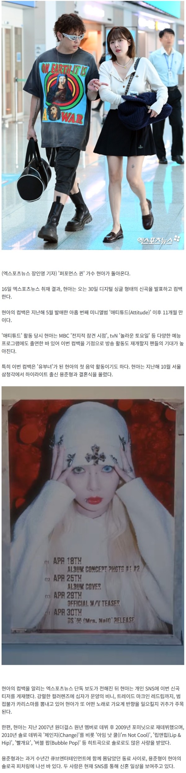 [단독] '용준형♥' 현아, 결혼 6개월만 겹경사…11개월만 컴백 확정 (종합)