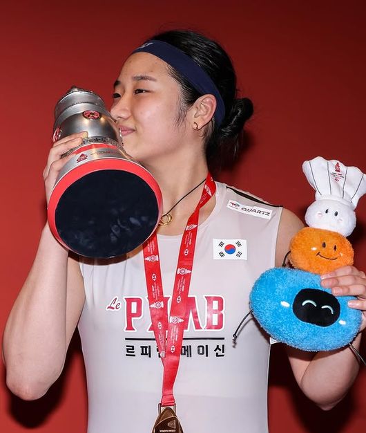 안세영의 우승으로 탄생한 대기록은 11관왕만이 아니다. 그는 월드투어 파이널 단식 우승으로 상금 24만 달러(약 3억 4400만 원)를 획득했다. 그 덕분에 역사상 최초로 단일 시즌 상금 수입 100만 달러를 넘기며 배드민턴계의 새로운 지평을 열었다.