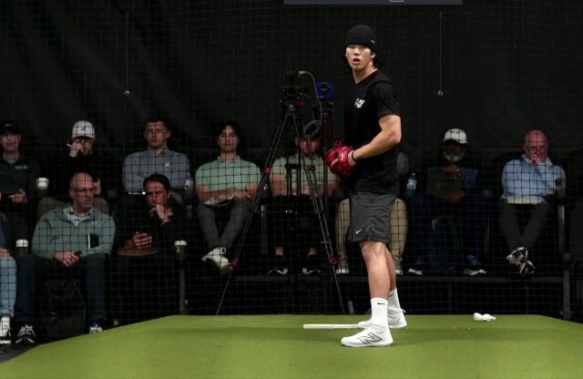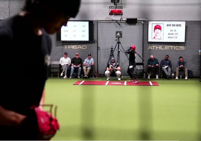 영상을 보면, 홍원빈은 트레드 어슬레틱 실내 피칭장에서 비니와 운동복 차림으로 많은 공을 뿌렸다. 타석에 타자도 들어왔고, 투구 및 타격 모습을 지켜보는 사람도 많았다. 패스트볼 최고 97.2마일을 찍었다.