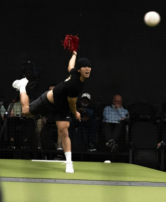 홍원빈은 검은색 발판 티셔츠와 검은색 반바지를 입고 마운드에 올랐다. 비니까지 쓰고 마운드에 오른 그는 강속구를 마음껏 뿌렸다. 그리고 이곳을 직접 찾은 메이저리그 스카우트를 비롯한 수많은 관계자를 향해 눈도장을 확실하게 찍었다.