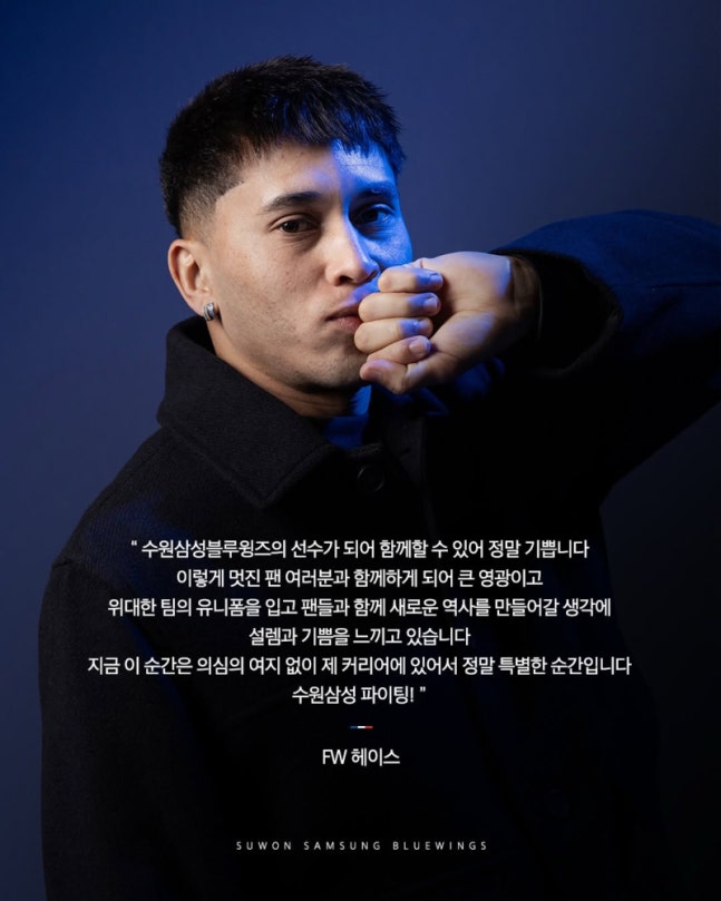 수원은 13일 구단 공식 소셜미디어(SNS)를 통해 헤이스 영입 소식을 발표했다.