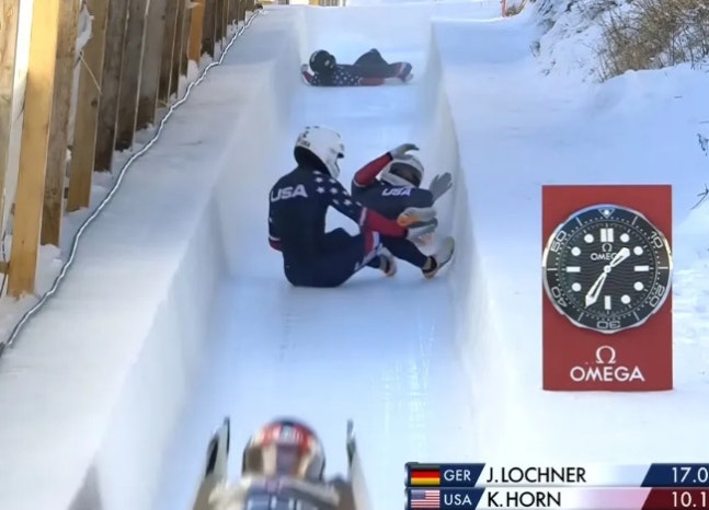 썰매는 이미 가속이 붙어 트랙을 따라 내려가기 시작했고, 추락한 세 명의 선수들은 시속 수십 킬로미터로 미끄러지는 썰매 뒤로 내동댕이쳐졌다.