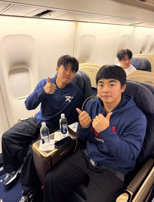 한국 야구대표팀 포수 김형준은 11일 새벽(이하 한국시간) 개인 SNS 계정에 미국 마이애미로 향하는 전세기에서 동료들과 함께 찍은 사진을 공개했다. 사진을 올린 당사자 김형준을 비롯해 소형준, 김영규, 조병현, 송승기, 문현빈, 안현민 등이 김형준의 카메라를 보고 미소를 짓고 있으며, 김영규는 비즈니스 좌석에서 편하게 누운 상태에서 ‘브이’자를 그렸다.