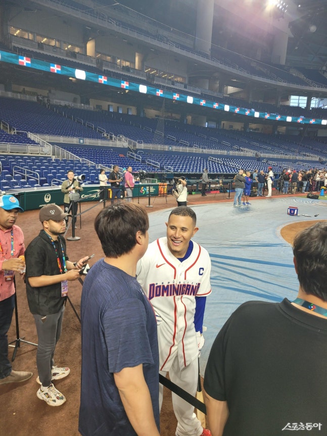 마차도는 도미니카공화국의 타격 훈련을 보기 위해 그라운드에 나선 이정후를 발견하자 또다시 반갑게 인사를 전했다. 샌프란시스코 자이언츠에서 활약하는 이정후는 “같은 지구여서 아무래도 잘 알고 지내는 사이”라며 둘 사이 인연을 밝혔다.