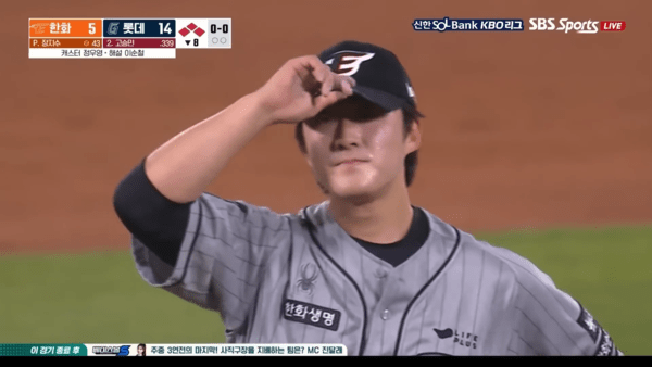 결국 장유호는 무사 만루에서 강판당했다. 이어 등판한 김규연이 1아웃을 잡고 전준우에게 만루 홈런을 맞은 뒤에야 이닝이 끝났다. 이날 투구 기록은 1이닝 5피안타 2볼넷 1탈삼진 7실점(6자책). 결국 덕아웃에서 자책하면서 눈물을 흘리는 모습이 카메라에 잡혔다.