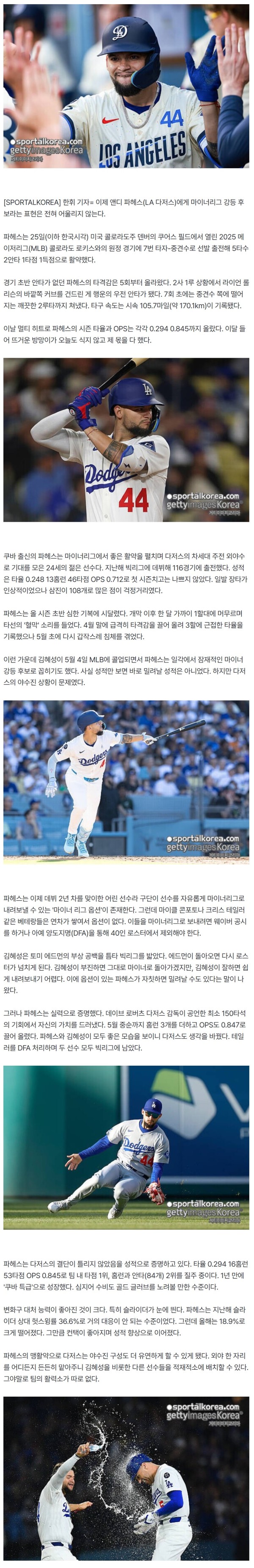 김혜성 잘하면 강등? No! 공수겸장 '쿠바 특급'이 다저스 활력소…팀 내 타점 1위 파헤스, 어떻게 잠재력 터뜨렸나