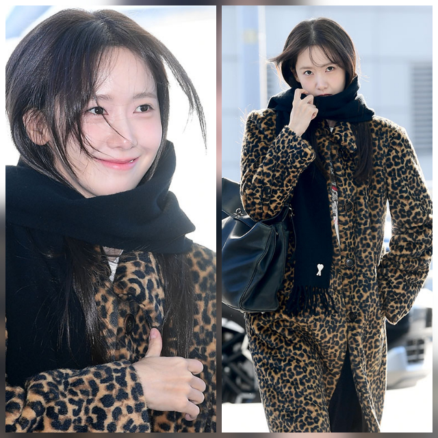윤아는 두툼한 레오파드 퍼 코트를 걸치고 블랙 머플러로 목을 단단히 감싸며 추위를 막았다. 차가운 바람에 잔머리가 살짝 굳은 듯 흩날리자 팬들 사이에서는 “머리카락에 고드름 맺힌 줄”, “겨울 요정 실사판”이라는 반응도 이어졌다. 169cm·48kg의 비율이 그대로 드러나는 자연스러움 속에서도 윤아 특유의 깔끔한 공항 패션 감각이 돋보였다.