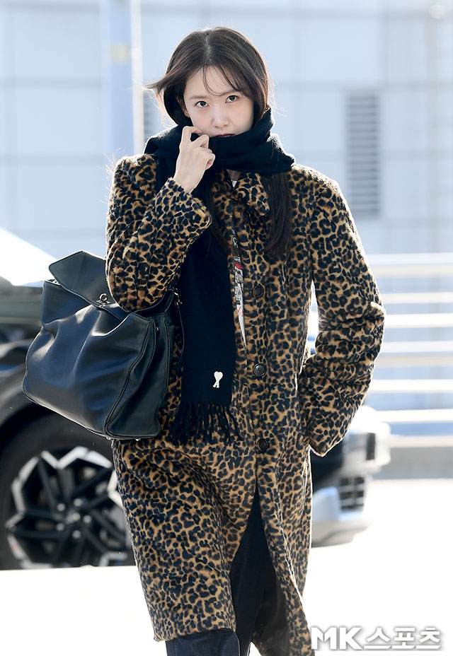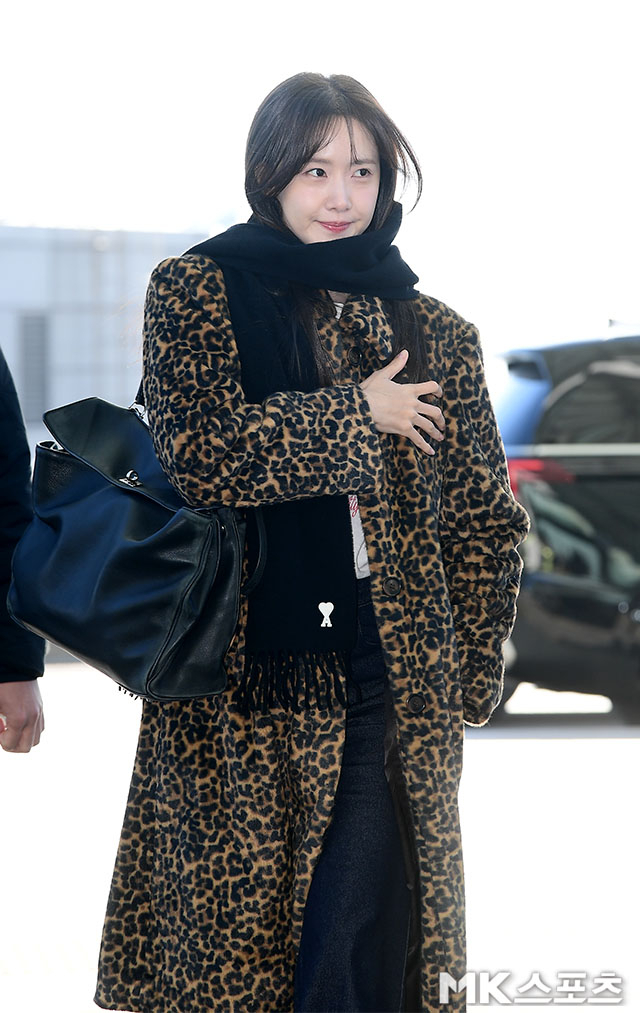 올해 35세가 된 윤아는 내추럴 메이크업과 꾸안꾸 스타일로도 ‘레오파드 코트’라는 강한 패턴을 완벽히 소화하며 분위기 여신 면모를 입증했다. 가벼운 미소로 팬들에게 인사하는 모습은 영하 2도 날씨도 잊게 만들 만큼 따뜻했다.