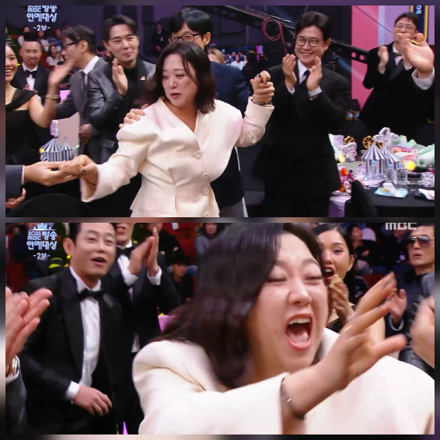 코미디언 김숙이 최우수상 수상 소감에서 후배 박나래의 이름을 언급했다. 모두가 말을 아끼던 시점, 굳이 하지 않아도 됐을 그 이름을 김숙은 무대 위에서 자연스럽게 불렀다. 짧은 한마디였지만, 그 선택은 곧바로 주목을 받았다.