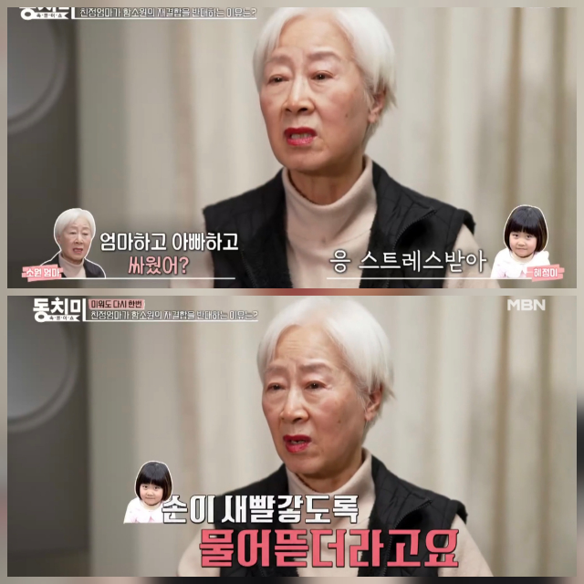 실제로 함소원의 어머니는 손녀 혜정이를 가장 걱정했다. 또 어머니는 “혜정이가 부모 싸움을 너무 많이 본다”며 “얼굴이 어두우면 먼저 ‘엄마 아빠 또 싸웠어?’라고 묻는다”고 말했다. 스트레스를 받아 손을 물어뜯는 모습까지 보였다고 전해 안타까움을 더했다.