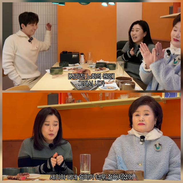 결국 딘딘은 캐나다 밴쿠버로 유학을 떠났고, 이후 뜻밖의 변화가 찾아왔다. 누나는 “네가 떠나고 친구들한테 문자가 왔다. ‘너네 엄마 너무 젊어지셨다’고 하더라”며 “노화의 원인이 너였던 거다. 내가 희생해서 엄마가 회춘한 것”이라고 말해 웃음을 자아냈다.