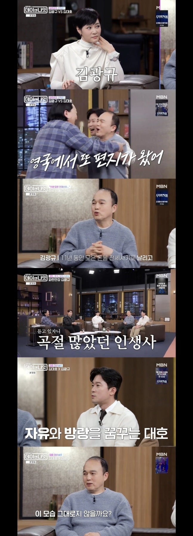 지난 21일 오후 9시 40분 방송된 MBN ‘김주하의 데이앤나잇’ 13회는 시청률 조사기관 닐슨코리아 전국 기준 최고 3.6%를 기록했다. 김대호와 김광규는 괴로움과 외로움도 웃음으로 승화하는 유쾌한 입담으로 긍정적인 시너지를 발산했다.