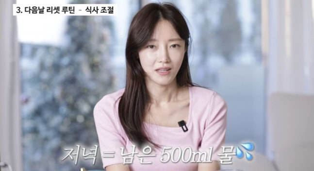 또 하루 물 2L 필수 섭취, 사과에 땅콩버터를 발라 먹는 등 야채 중심 가벼운 식단, 저녁에는 물 500ml를 마신다고 전했다. 서하얀은 "계속 (물로) 배를 채운다. 너무 허기가 진다 싶으면 바나나를 먹거나 한다"라고 이야기했다.