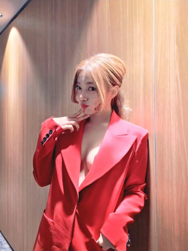 이채영은 27일 자신의 SNS에 입술 모양 이모티콘과 함께 여러 장의 사진을 게재했다. 공개된 사진 속 그는 속옷 없이 레드 재킷만을 걸친 과감한 스타일링으로 시선을 사로잡았다. 깊게 파인 재킷 실루엣과 당당한 포즈, 강렬한 눈빛이 어우러지며 고혹적인 카리스마를 완성했다.