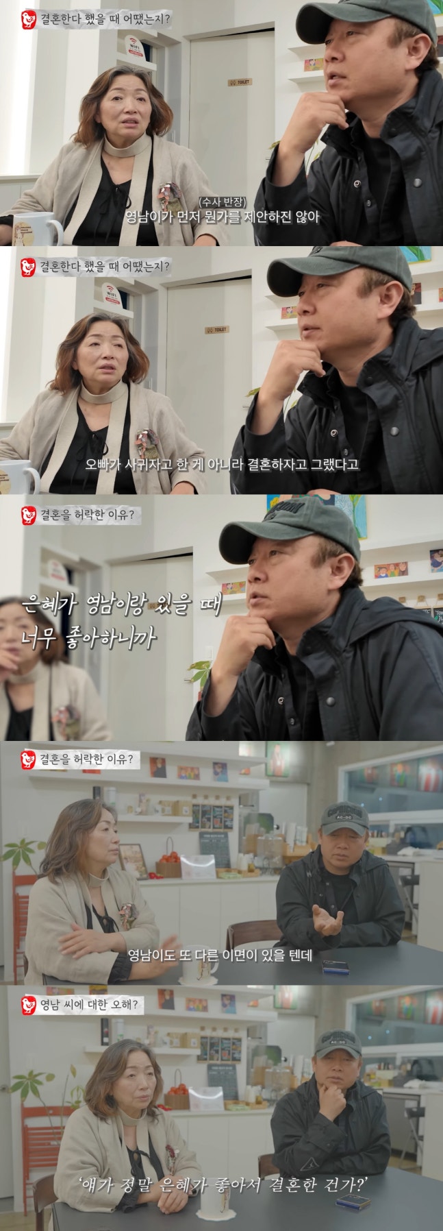이에 아버지는 "아니다. 영남이가 뭔가 먼저 제안하진 않는다. 그냥 '할까?' 하면 '네' 하지 걔가 뭐 하자고 안한다"라 추리했지만 어머니는 "아니다. 은혜가 수도 없이 얘기하지 않냐. '오빠가 사귀자 그런게 아니라 결혼하자 했다'고"라며 의견을 나눴다.