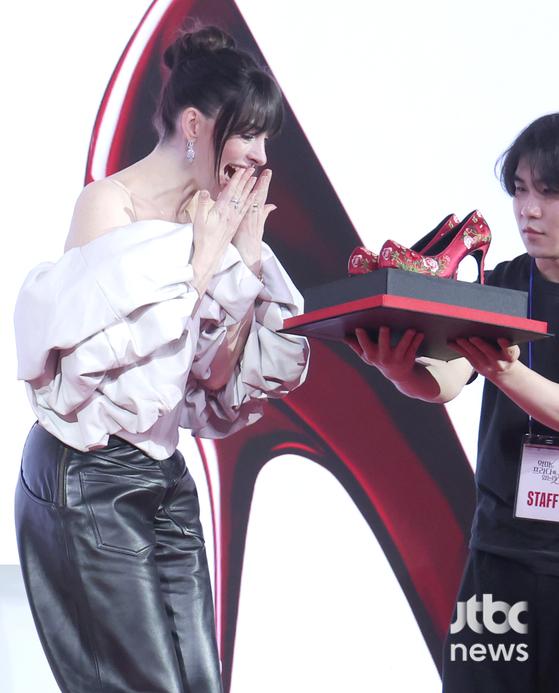 '내한' 메릴 스트립·앤 해서웨이 '꽃신' 선물에 활짝 "보물 받았다"