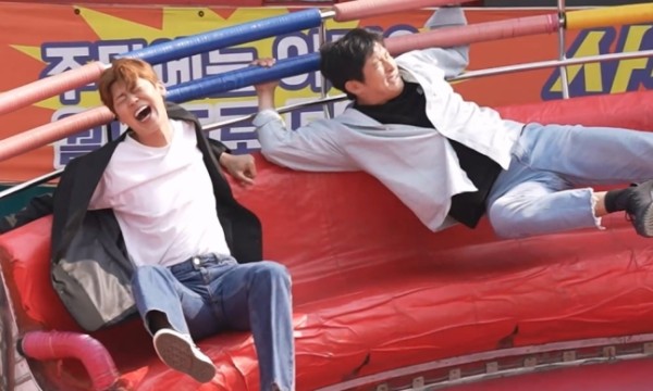 ‘디스코 팡팡’에서 간신히 살아남은 ‘영웅즈’는 마음을 다잡고 어린이 관람차에 오른다. 생각보다 높이 올라가는 관람차에 당황한 기안84는 “나 너 붙잡고 있을게”라며 떨리는 목소리로 박지현의 허리를 붙잡고 품에 안긴 채 쭈그려 앉는다. 어리둥절해하던 박지현은 이후 자신과 놀아주려고 노력했던(?) 기안84의 진심에 감동한 마음을 전하기도.
