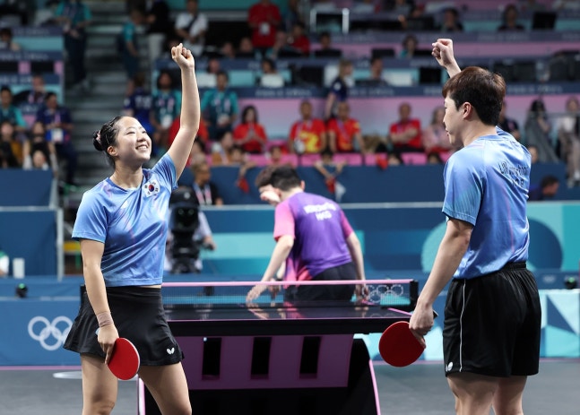 임종훈의 포핸드와 신유빈의 백핸드가 세계 1위 조합을 쉴새 없이 두들겼다. 린스둥의 서브 범실까지 나오면서 중국은 자멸했다. 임종훈-신유빈 조가 11-2로 상대를 완파했다.
