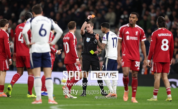 그러나 추격 흐름은 오래가지 못했다. 후반 추가시간 2분, 로메로는 리버풀 센터백 이브라히마 코나테와 공중볼 다툼 과정에서 넘어지며 엉켰다. 여기까지는 흔한 장면이었다. 문제는 이후였다. 로메로는 감정을 주체하지 못한 채 코나테를 발로 차는 행동을 했고, 두 번째 경고를 받아 퇴장당했다. 이미 9명으로 싸우던 토트넘은 사실상 항복 선언을 할 수밖에 없었다.