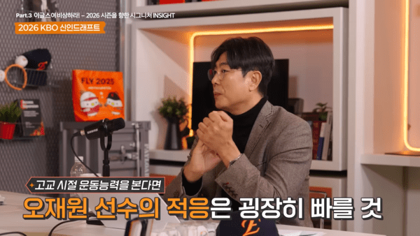 이러다 보니 고졸 신인 오재원에게도 눈길이 간다. 유신고의 핵심 외야수로 활약한 오재원은 올해 열린 2026 KBO 신인드래프트 1라운드 전체 3순위로 한화에 입단했다. 지명 당시 손혁 한화 단장이 '중견수 오재원'이라 칭할 만큼 한화의 차기 주전 중견수감으로 기대를 모은다.