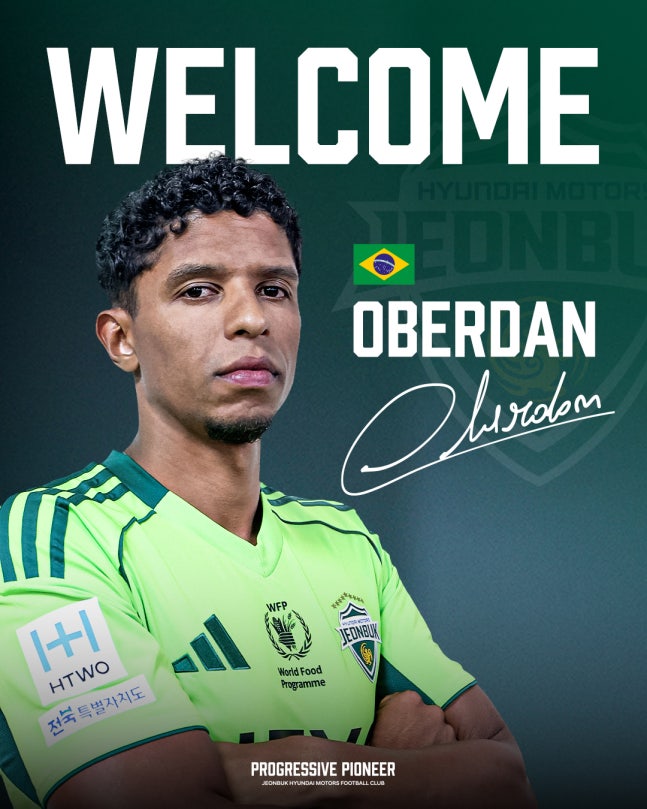 전북은 10일 "K리그 최고 미드필더 오베르단을 영입하며 중원을 강화했다. 이번 영입은 2026시즌 리그 2연패와 아시아 정상 탈환을 노리는 전북에 강력한 중원 동력을 더해줄 것으로 기대된다"라고 밝혔다. 전북은 현금(이적료)과 젊은 수비수 진시우를 포항으로 보내는 조건으로 오베르단 영입을 확정했다. 지난시즌 막바지 무릎을 다친 오베르단은 개인 합의를 마친 후 9일 메디컬테스트를 무사히 통과해 전북 유니폼을 입게 됐다.