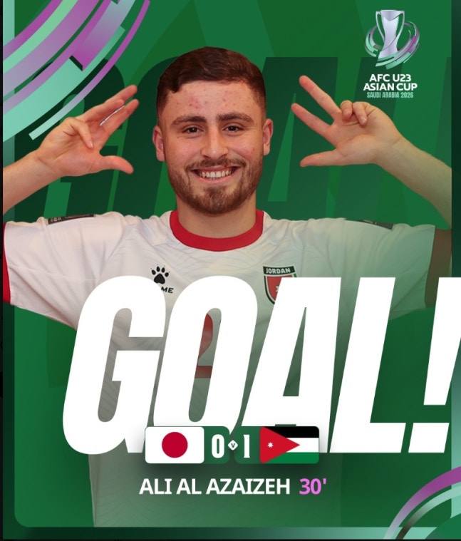 일본 페널티 박스 안에서 요르단 미드필더 마흐무드 티드가 내준 공을 박스 안으로 쇄도하던 공격수 알리 알아자이제가 골문 구석을 노리는 정확한 왼발 슈팅으로 일본 골망을 갈랐다.