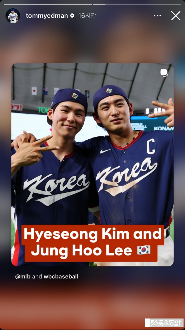 대표팀의 8강 진출이 확정된 뒤에는 국내외서 응원 물결이 이어졌다. 주장 이정후(샌프란시스코 자이언츠), 김혜성(LA 다저스)은 소셜미디어(SNS)로 모처럼 기쁜 마음을 드러냈다. 그러자 김혜성의 팀 동료이자 2023년 대회서 대표팀 일원으로 활약한 토미 에드먼은 이들 2명의 사진을 게재해 8강 진출을 축하했다. 대회 직전 종아리 부상으로 지명 투수 명단(DPP)에 머물던 라일리 오브라이언(세인트루이스 카디널스)도 같은 사진을 올렸다. 팔꿈치 굴곡근 부상으로 최종 명단서 제외된 원태인(삼성 라이온즈)은 SNS에 태극기 이모티콘과 대표팀의 8강 진출 관련 이미지를 게재했다.
