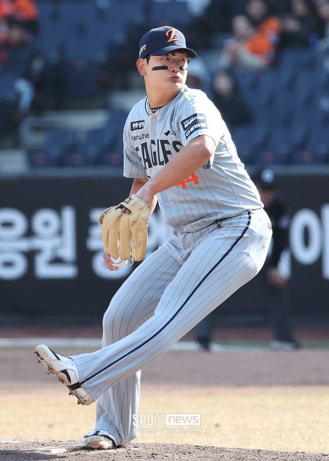 한화 이글스 우완 마무리투수 김서현(21)은 13일 대전 한화생명볼파크에서 열린 2026 KBO 시범경기 삼성 라이온즈와의 홈경기에 구원 등판했다. 1이닝 2탈삼진 무실점, 투구 수 12개로 순식간에 경기를 끝냈다. 3-2 한 점 차 승리를 지키며 세이브를 수확했다.