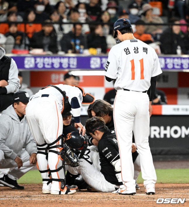 [OSEN=대전, 이대선 기자] 찰나의 순간, 대전 구장에 정적이 흘렀다. 시속 146km의 강속구가 타자의 안면을 직격 하는 아찔한 상황. 쓰러졌던 타자가 일어나 보여준 행동은 승패보다 더 큰 울림을 남겼다.