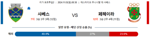 11월3(일) 00:30포트투갈2G.D 샤베스:페헤이라 축구분석자료
