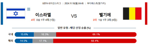 11.18(월) 04:45U네이션이스라엘:벨기에 축구분석자료