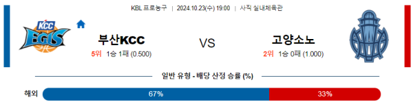 10월23(수) 19:00KBL부산 KCC:고양 소노 농구분석자료