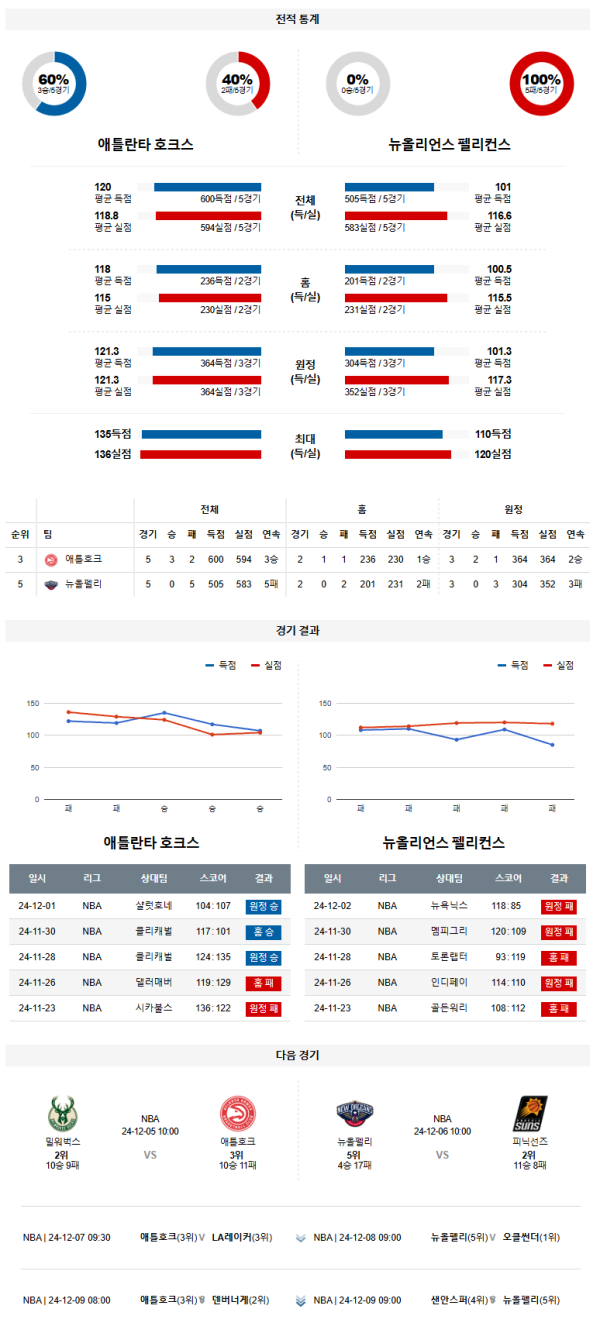 12월 03 (화) 09:30NBA애틀란타:뉴올리언스 농구분석자료