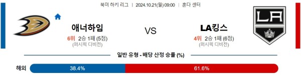 10월21(월) 09:00NHL애너하임:LA 킹스 하키분석자료