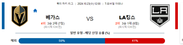 10월23(수) 12:00NHL베가스:LA 킹스 하키분석자료